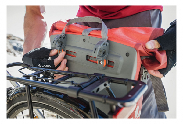 Verschwinde und erkunde die Welt um dich herum! Die wasserdichten Gepäcktaschen werden am deutschen VAUDE-Firmensitz in Bodensee klimaneutral mit strapazierfähigem, PVC-freiem Planenmaterial für alle Weltreiseerlebnisse hergestellt. Mit einem Rollverschluss, mit dem Sie die Größe des Beutels anpassen und ihn wasserdicht verschließen können. Eine zusätzliche Innentasche erleichtert die Aufbewahrung von Gegenständen. Die Taschen sind mit dem QMR 2.0-System sicher an der rechten und linken Seite der hinteren Zahnstange befestigt, was auch eine einfache Anpassung und ein schnelles An- und Ausziehen ermöglicht. Mit einem Fahrradschloss können sie direkt am QMR-Haken verriegelt werden. Mit reflektierenden Elementen. Im Lieferumfang enthalten: zwei Taschen (Paar). Kann zusammen mit den praktischen Zubehörtaschen verwendet werden: Toolbag Back, Sortyour Back, Addita Bag.