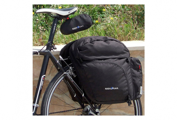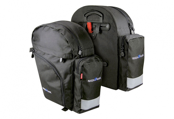 Comfortable bags with particularly good access to contents of each compartment. Though not new, these bags still stand out as exceptional bags and come along on each of our R&K bike tours. With top compartment, separate main compartment with side opening, and outer compartments with large safety reflectors. As in high-quality backpacks, the inner compartment can be divided into two sections. Automatically locks onto carriers without the need for straps or buckles. Integrated rain cover on the front side is easily detached for cleaning and drying. Complete with Comfort Rail and removable handle. Available only in pairs.